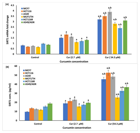 2.5. Effect of Curcumin on Expression of Sirtuin1 (SIRT1)
