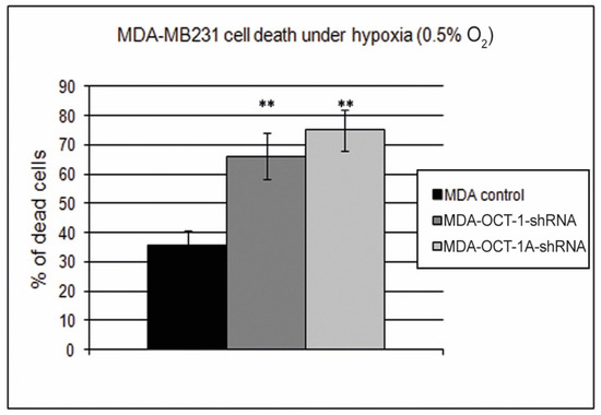 3.3. A Decrease in the OCT-1 and Its OCT-1A Isoform Expression Increases Hypoxia-Associated MDA-MB231 Cell Death
