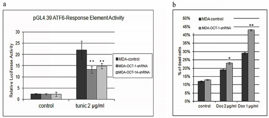 3.4. A Decrease in OCT-1 and OCT-1A Isoform Expression Inhibits Endoplasmic Reticulum Stress Response