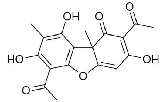 - Ingólfsdóttir, K. Usnic Acid. Phytochemistry 2002, 61, 729–736. [Google Scholar] [CrossRef]