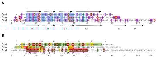 | GvpA | F, G, H, J monomer + dimer, M monomer |