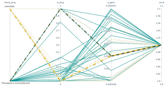 - Camostat with a combined p-value of 0.02, on the condition that the therapeutic corticosteroid is selected in this scenario.