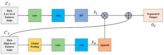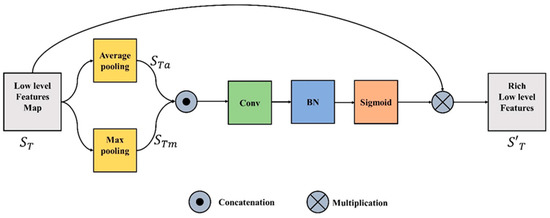 Meanwhile, convolution operation and batch normalization are applied on low-level features to adjust and normalize the scale of channels and is generated, represented in Equation (12).