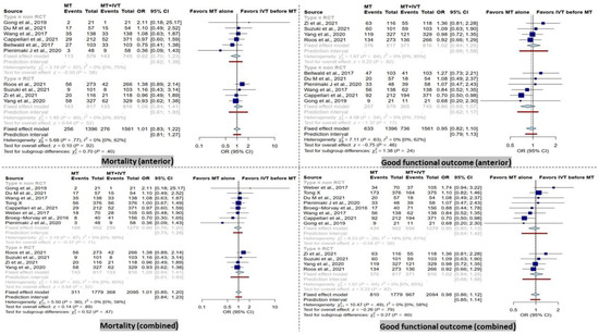 In addition, no significant difference in good functional outcome (mRS score ≤ 2) at 90 days was detected in the anterior group in RCT and non-RCT subgroups (Figure 2).