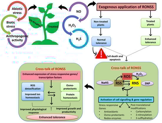 - Mishra, V.; Singh, P.; Tripathi, D.K.; Corpas, F.J.; Singh, V.P. Nitric oxide and hydrogen sulfide: An indispensable combination for plant functioning. Trends Plant Sci. 2021, 26, 1270–1285. [Google Scholar] [CrossRef]