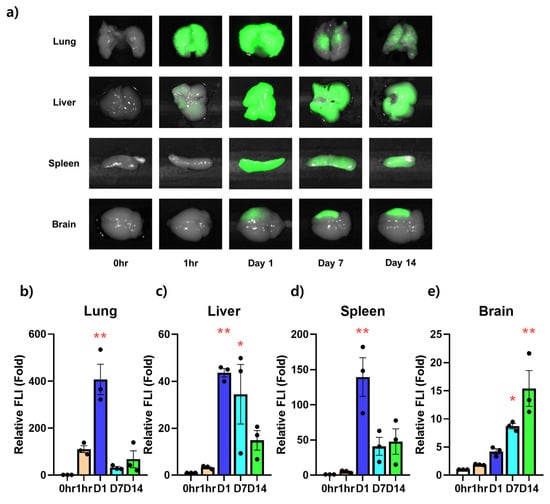 3.3. Ex Vivo NIR Fluorescent Imaging on the Infiltration Ability of Stem Cells for Each Organ over Time