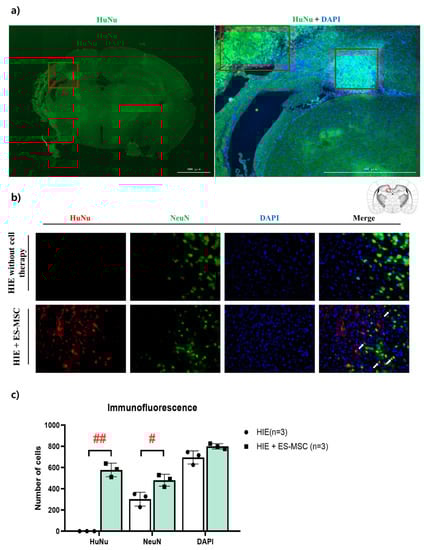 3.4. Engraftment of ES-MSCs in Hypoxic–Ischemic Brain Lesion