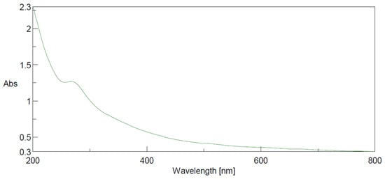 The UV scan of the water-diluted suspension of the nanopowder of Turbinaria triquetra showed a broad peak at about 270 nm (Figure 5).