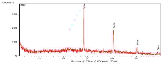 The XRD analysis of the sample was performed using a PAN analytical X-ray Diffraction equipment model X’Pert PRO with a Secondary Monochromator and Cu radiation (λ = 1.542 Å) at 45 K.V., 35 M.A. and a scanning speed of 0.04°/sec. The diffraction peaks between 2θ = 2° and 60°, corresponding spacing (d, Å) and relative intensities (I/I°) were obtained. The diffraction charts and relative intensities were obtained and compared with ICDD files.