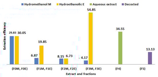 The plant powder was extracted using methanol, ethanol, ethyl acetate and n-butanol, which have a different polarity. Next, Moris extracts were kept at 4 °C until they were used.