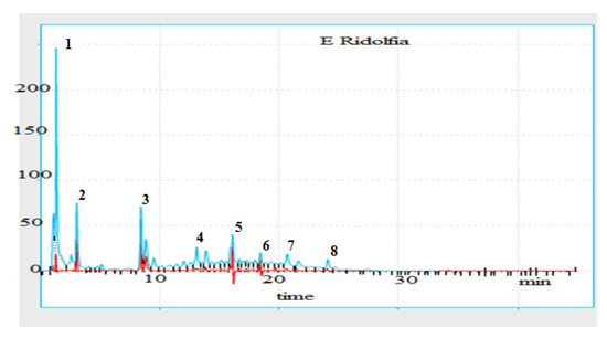 - Božović, M.; Garzoli, S.; Baldisserotto, A.; Andreotti, E.; Cesa, S.; Pepi, F.; Vertuani, S.; Manfredini, S.; Ragno, R. Variation in Essential Oil Content and Composition of R. segetum (L.) Moris Based on 30-Hour Prolonged Fractionated Extraction Procedure. Nat. Prod. Res. 2020, 34, 1923–1926. [Google Scholar] [CrossRef] [PubMed]