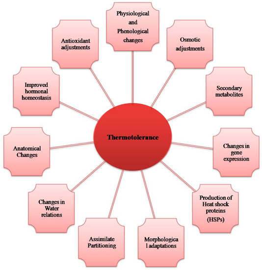 - Maestri, E.; Klueva, N.; Perrotta, C.; Gulli, M.; Nguyen, H.T.; Marmiroli, N. Molecular genetics of heat tolerance and heat shock proteins in cereals. Plant Mol. Biol. 2002, 48, 667–681. [Google Scholar] [CrossRef]