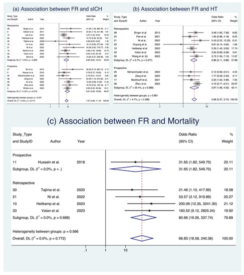 One study [37] with a cohort size of 362 reported on the prevalence of FR in AIS patients undergoing EVT through a prospective and retrospective study design. However, a meta-analysis was unable to be performed due to an insufficient number of studies (Table 4).