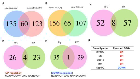 Jin, Y.; Wei, C.; Huang, X.; Zhang, D.; Zhang, L.; Li, X. Bioinformatics Analysis and Experimental Verification of Exercise for Aging Mice in Different Brain Regions Based on Transcriptome Sequencing. Life 2023, 13, 1988. https://doi.org/10.3390/life13101988