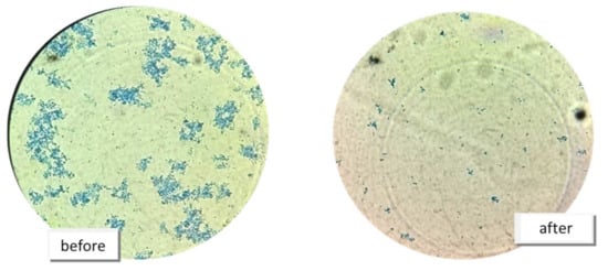 3.2.2. Liquid Medium Test—Agar Diffusion