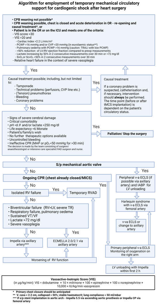 - Stein, L.H.; Silvestry, S.C. Algorithmic management of postcardiotomy shock with mechanical support: Bring a map, a plan, and your parachute—And know how to use all three. JTCVS Open 2021, 8, 55–65. [Google Scholar] [CrossRef] [PubMed]