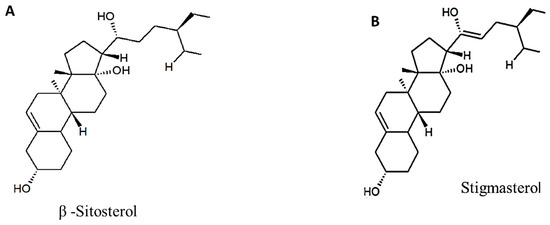 - Bakrim, S.; Benkhaira, N.; Bourais, I.; Benali, T.; Lee, L.H.; El Omari, N.; Sheikh, R.A.; Goh, K.W.; Ming, L.C.; Bouyahya, A. Health benefits and pharmacological properties of stigmasterol. Antioxidants 2022, 11, 1912. [Google Scholar] [CrossRef]