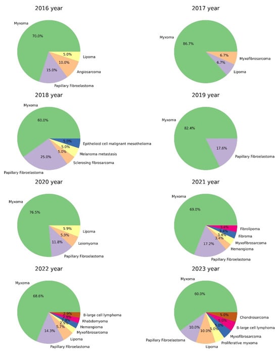 Detection of heart tumors by endomyocardial biopsies from 2016 to 2023.