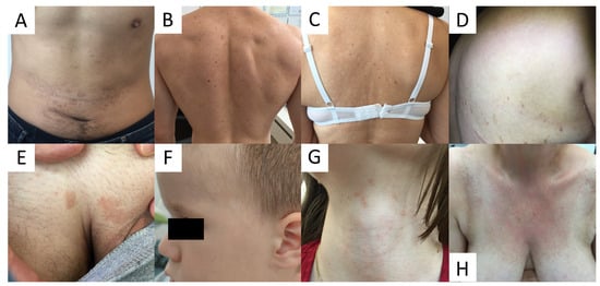 - Martora, F.; Gallo, L.; Fabbrocini, G.; Picone, V. “PiMa sign”: A possible correlation between dermographism and pityriasis versicolor? J. Cosmet. Dermatol. 2023, 22, 689–691. [Google Scholar] [CrossRef]