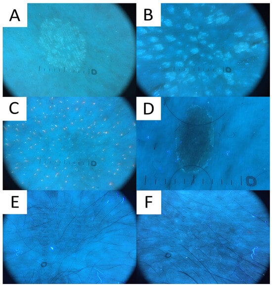 - Al-Nasiri, M.; Navarrete-Dechent, C.; Korecka, K.; Salwowska, N.; Goldust, M.; Pietkiewicz, P. Ultraviolet-Induced Fluorescence Dermatoscopy of Trichobacteriosis Axillaris Reveals Peripilar Yellow-Green Luminescent Concretions. Dermatol. Pract. Concept. 2023, 13, e2023169. [Google Scholar] [CrossRef] [PubMed]