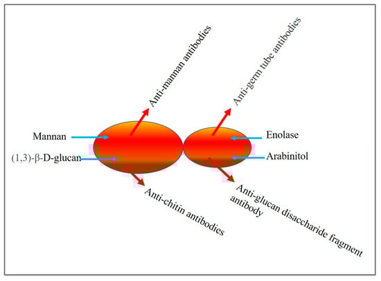 Mannan is a major cell wall component and is the primary circulating antigen encountered during infection. Enolase [26] and arabinitol [27], antibodies against chitin (ACCA) and synthetic disaccharide fragments of glucans (ALCA) [28], have also been reported as marker molecules.