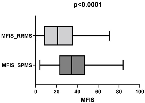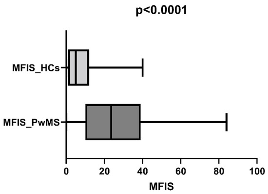 | MFIS-Cognitive subscale (Mean ± SD) | 8.29 ± 9.01 | 3 ± 3.84 | p < 0.0001 |