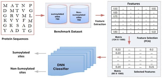 Recently, Xu et al. [23] and Chen et al. [24] proposed computational models known as SUMOPre and SUMOhydro, respectively. The proposed predictors used SVM as a learning algorithm for the classification of SUMO sites. Similarly, Jia et al. [25] developed the pSumo-CD predictor. The proposed predictor employed the general PseAAC method and SVM and RF algorithms for the classification and identification of sumoylation sites. Most recently, Sharma et al. [26] proposed HseSUMO for the prediction of sumoylation sites. The HseSUMO employed the half-sphere exposure method and decision tree algorithm as the learning method. The above-mentioned models have produced promising results; however, conventional learning models require significant human expertise to extract prominent features automatically [27]. Additionally, the prediction performance of these models is limited in the case of nonlinearity in the dataset.