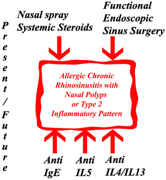 Figure 1. Present and future treatment options in allergic chronic rhinosinusitis with nasal polyps or type 2 inflammatory pattern.