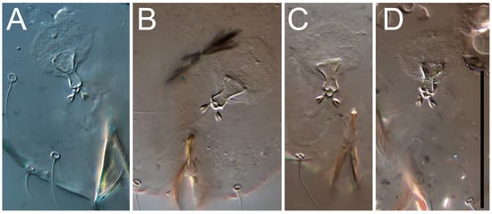 24 Setae vi short, not extending beyond anterior margin of prodorsum; bases of vi touching; medial area of prodorsal shield with non-uniform pattern of striations in its anterior and posterior parts; setae h2 and h3 shorter than anus; rounded sclerotized capsule at junction of canal of spermatheca and atrium present. USA (Michigan)………………………………………………………………………………………………………………………………………………………Th. potawatomorum sp. n.
