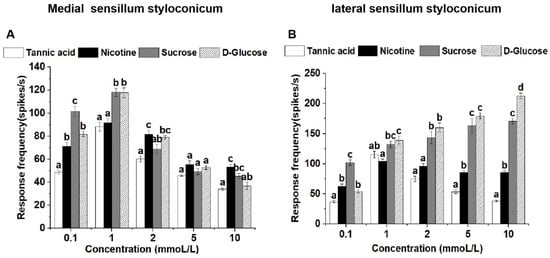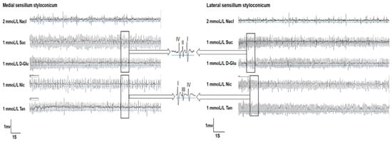3.3. Responses of Lateral Sensilla Styloconica