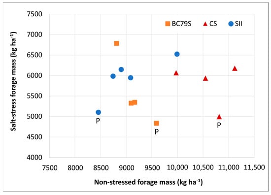 - Johnson, D.W.; Smith, S.E.; Dobrenz, A.K. Selection for increased forage yield in alfalfa at different NaCl levels. Euphytica 1992, 60, 27–35. [Google Scholar] [CrossRef]