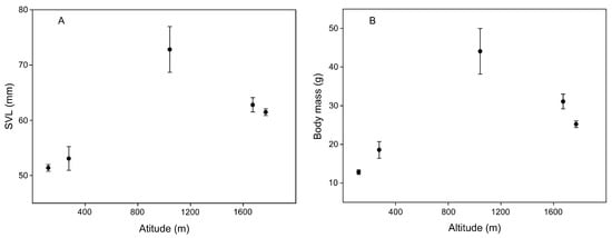 - Liao, W.B.; Lu, X. Adult body size = f (initial size + growth rate × age): Explaining the proximate cause of Bergman’s cline in a toad along altitudinal gradients. Evol. Ecol. 2012, 26, 579–590. [Google Scholar] [CrossRef]
