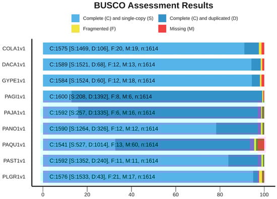 - Manni, M.; Berkeley, M.R.; Seppey, M.; Zdobnov, E.M. BUSCO: Assessing Genomic Data Quality and Beyond. Curr. Protoc. 2021, 1, e323. [Google Scholar] [CrossRef] [PubMed]