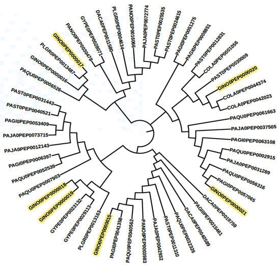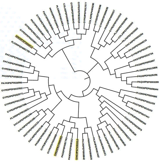The advantage of “genome-wide” comparison is that it provides an overview of the selected targets/biosynthesis pathways from a desired plant. Earlier, a similar profiling process was conducted for cytochrome multifamily genes with expressed sequence tags (EST) in P. ginseng [46], which was later improved with next-generation sequencing through de novo transcriptome assemblies [47], and, finally, performed with chromosome-scale assembled genomes [14]. Limited CYPs were observed when EST and de novo transcriptome assemblies were used, as compared to whole-genome assemblies [14]. Only three clans of partial cytochrome, i.e., CYP71, CYP90, and CYP72, were identified when compared to whole-genome-based CYP profiles, which is a partial result [14,46,47]. This study is the first comparative CYP profiling study for Pseudo ginseng along with the Panax families. Through systematic bioinformatics analysis, as illustrated in Figure 1, forty-two cytochrome families were identified from Panax and other Pseudo ginseng plants. Among those, 16 cytochrome families were found to be involved in terpenoid biosynthesis, and 19 others were found to be involved in other secondary metabolite biosynthesis pathways. According to the MetaCyc pathway database, the CYP716 family enzymes are primarily characterized for ginsenoside biosynthesis. In total, twenty-four sequences from all selected genomes were plotted as a phylogenetic tree in Figure 3. As previously mentioned in Zang et al. [48], Panax plants were summarized into three groups based on their available ginsenoside profiles. However, due to the lack of enough datasets, a similar process has not yet been carried out for Pseudo ginseng plants. Therefore, in this study, Panax plants were considered as a model/reference for Pseudo ginseng to gain knowledge on triterpenoid biosynthesis pathway possibilities. These findings could be used to develop a similar yeast model for the industrial production of opioids cascade biosynthesis in one step [22]. For example, due to the long-life cycle of ginseng, raw material shortage is common in various industries. As a result, researchers are exploring the conversion of saponins from Pseudo-ginseng, such as ginsenosides from gypenosides, under laboratory conditions [49,50]. Our bioinformatics analysis identified CYP716A (CYP716A47 [50], CYP716A53v2 (protopanaxadiol to protopanaxatriol) [51], CYP716A52v2 (oleanane-type ginsenoside biosynthesis) [52], and CYP716A52v2 (oleanane-type ginsenoside biosynthesis) [53]) group enzymes from Pseudo ginseng, which are similar to the well-characterized CYP716A enzymes involved in the ginsenoside biosynthesis pathway (as shown in Figure 3). For instance, the sequence GINO0PEP0000017 is representative of the CYP716A47 family enzyme involved in the catalytic process of dammarenediol-II to protopanaxadiol in the ginsenoside biosynthesis pathway [51], and similar sequences are present in PLGR0 and PAQU0. Similarly, other CYP716 families in ginseng plants are not characterized in detail. Other sequences with high similarity may have similar characteristics, which need to be checked through experiments [54].