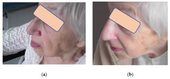 The majority of skin cancers (73–91%) had face and scalp locations [8,9]. The highest risk of recurrence is established for malignant epithelial tumors affecting the so-called “H-zone” (nose, nasal alar, and nasolabial folds, eyelids, palpebral commissures, and also segments of the temporal, zygomatic, and auricular areas, and lips). Particular clinical significance of these locations is explained by functional and aesthetic importance of facial structures involved in quality of patients’ quotidian life and social adaptation [8,10,11].