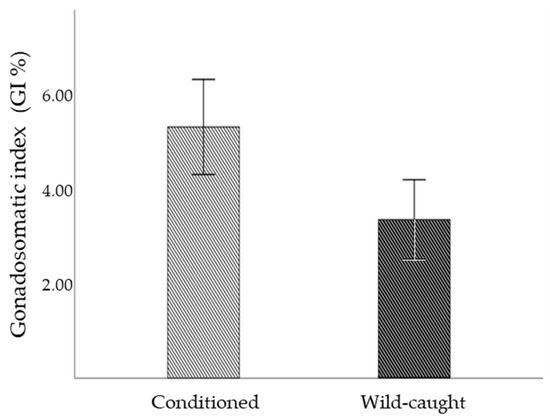 2.2. Experiment 1—Gonadosomatic Index (GI)