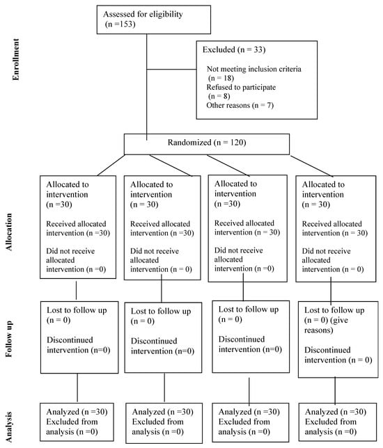 - Schulz, K.F.; Altman, U.G.; Moher, D.; CONSORT Group. CONSORT 2010 Statement: Updated guidelines for reporting parallel group randomised trials. BMJ 2010, 340, c332. [Google Scholar] [CrossRef]