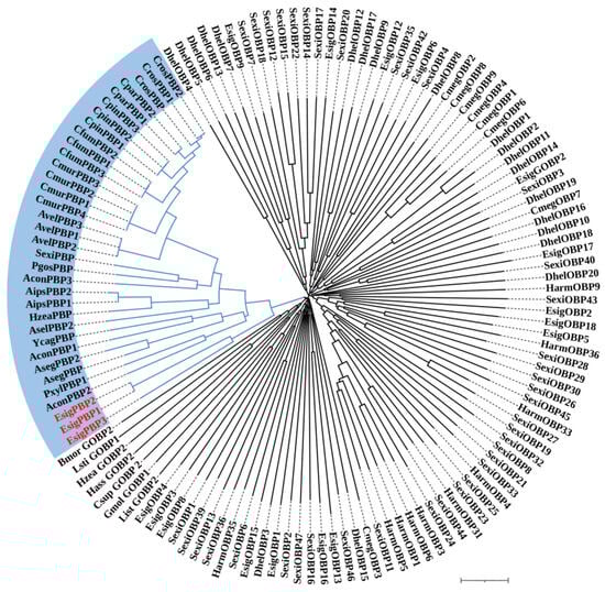 Neighbor-joining phylogenetic tree of odorant-binding proteins (OBPs).