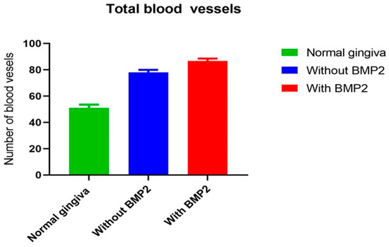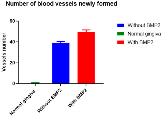 Several published studies highlighted the effect of BMPs on periodontal healing and inflammation. James et al. [23] demonstrated clinically significant alveolar bone, cementum regeneration, and regulation of periodontal inflammation with the use of rh-BMP-2. Unfortunately, there is a gap in the literature regarding the direct effect of rh-BMP-2 on new blood vessel formation in gingival tissue.