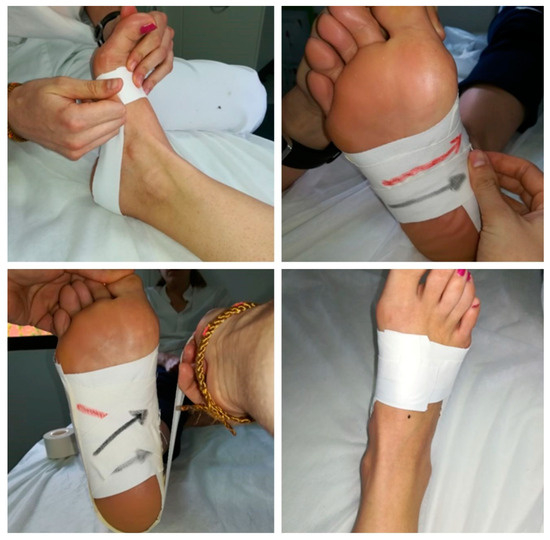- Holmes, C.F.; Wilcox, D.; Fletcher, J.P. Effect of a modified, low-dye medial longitudinal arch taping procedure on the subtalar joint neutral position before and after light exercise. J. Orthop. Sports Phys. Ther. 2002, 32, 194–201. [Google Scholar] [CrossRef][Green Version]
