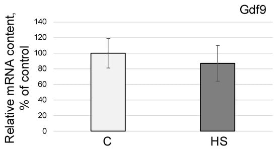 Relative mRNA content of the gene encoding GDF9. C—control group, HS—anti-orthostatic suspension group.