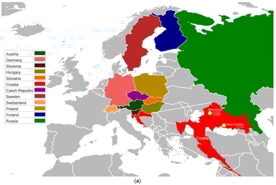 - Markotić, A.; Krajinović, L.C.; Margaletić, J.; Turk, N.; Miletić-Medved, M.; Zmak, L.; Janković, M.; Kurolt, I.C.; Soprek, S.; Daković Rode, O.; et al. Zoonoses and vector-borne diseases in Croatia—A multidisciplinary approach. Vet. Ital. 2009, 45, 55–66. [Google Scholar] [PubMed]