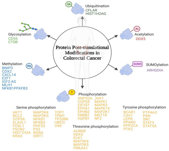 3. Relationship between Post-Translational Modifications Associated with Colorectal Cancer