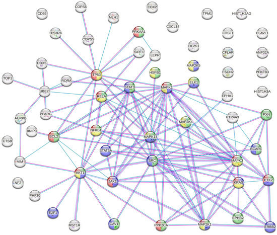 | Mitogen-activated protein kinase 1 | MAPK1 | Upregulated | [69] |