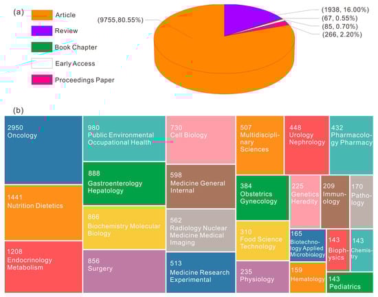 (a) Literature types; (b) Subject categories.