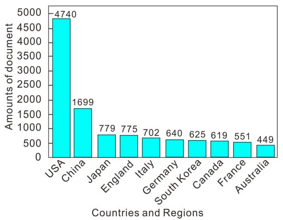 Top 10 countries and regions in the number of published articles.
