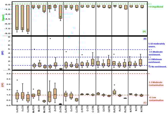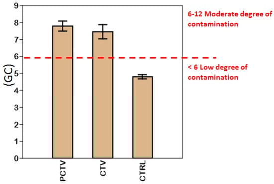 The application of geochemical indices occurred, according to Caeiro et al. [], based on reference points of the environment, which were areas with the greatest preservation and least human intervention, and the baseline for application in the geochemical indices was determined.