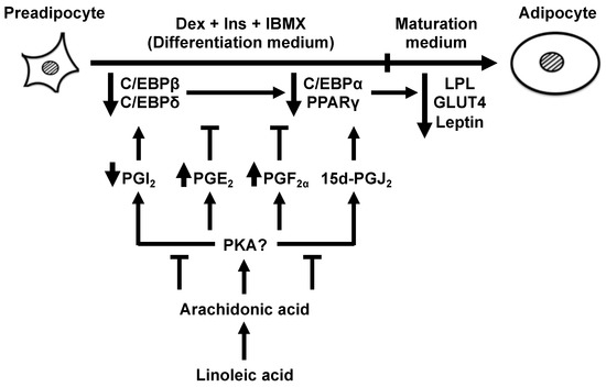 Chicago/Turabian StyleNartey, Michael N. N., Mitsuo Jisaka, Pinky Karim Syeda, Kohji Nishimura, Hidehisa Shimizu, and Kazushige Yokota. 2023. "Arachidonic Acid Added during the Differentiation Phase of 3T3-L1 Cells Exerts Anti-Adipogenic Effect by Reducing the Effects of Pro-Adipogenic Prostaglandins" Life 13, no. 2: 367. https://doi.org/10.3390/life13020367