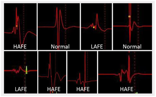 Three bipolar atrial electrogram types for ganglionated plexus mapping. HAFE, high amplitude fragmented electrogram; LAFE, low amplitude fragmented electrogram; Normal, normal atrial electrogram.