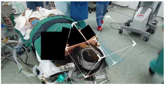 The position of fixed points such as the head clamp provide good spatial anchors for the HoloLens 2 to identify. As the navigation arm is exposed even after draping, the spatial anchors were not lost, and there was no movement of the image. We acknowledge that in this study, we have not provided any quantitative data on image drift.